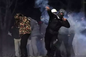Yoldan geçen polis ekipleri, TOMA’dan tazyikli su sıkarak yangına müdahale etti.